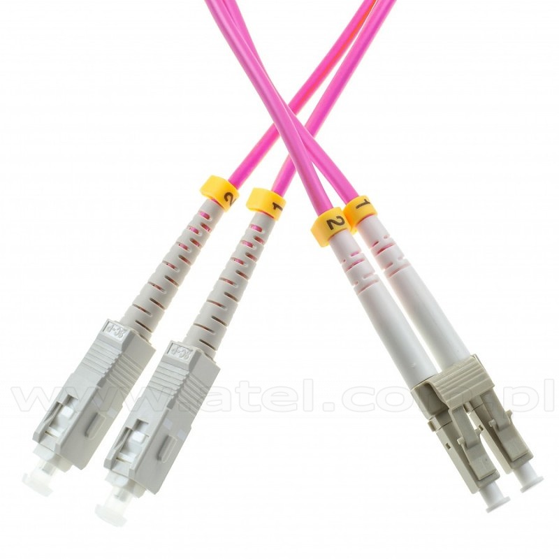 Patchcord SC/UPC-LC/UPC, MM, 50/125, dupleks, włókno OM4, 0,5 m