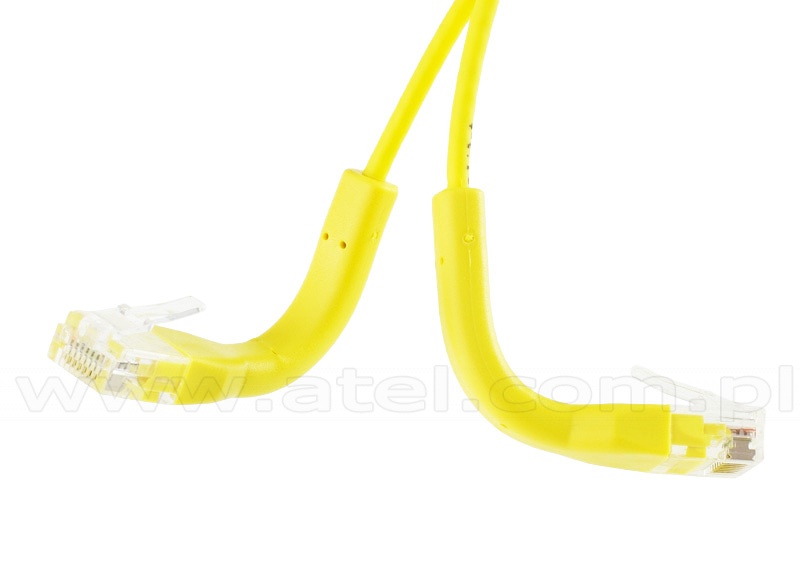 Patchcord nieekranowany kategorii 6a, żółty, długość 0,5m. Kabel o średnicy 3mm. Końcówki patchcordów można dostosować do montażu w trudno dostępnych miejscach dzięki elastycznym odgiętkom.